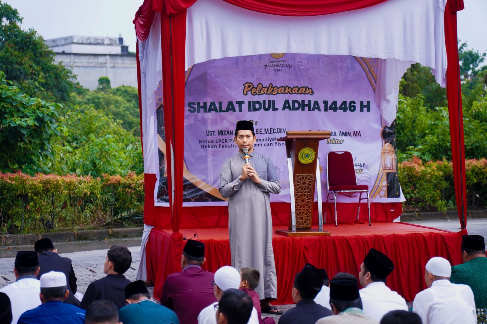 Segenap Wakil Rektor, bersama jajaran Pimpinan Wilayah (PW) Muhammadiyah Riau, Badan Pimpinan Harian (BPH) Umri, Pimpinan Organisasi Otonom Muhammadiyah Tingkat Wilayah Riau, civitas akademika, keluarga besar dan warga Muhammadiyah serra Masyarakat umum turut hadir dalam pelaksanaan sholat berjamaah tersebut. Seusai sholat, Umri menyediakan hidangan bagi seluruh jamaah sebagai bentuk kebersamaan dan wujud syukur di hari raya Idul Adha.