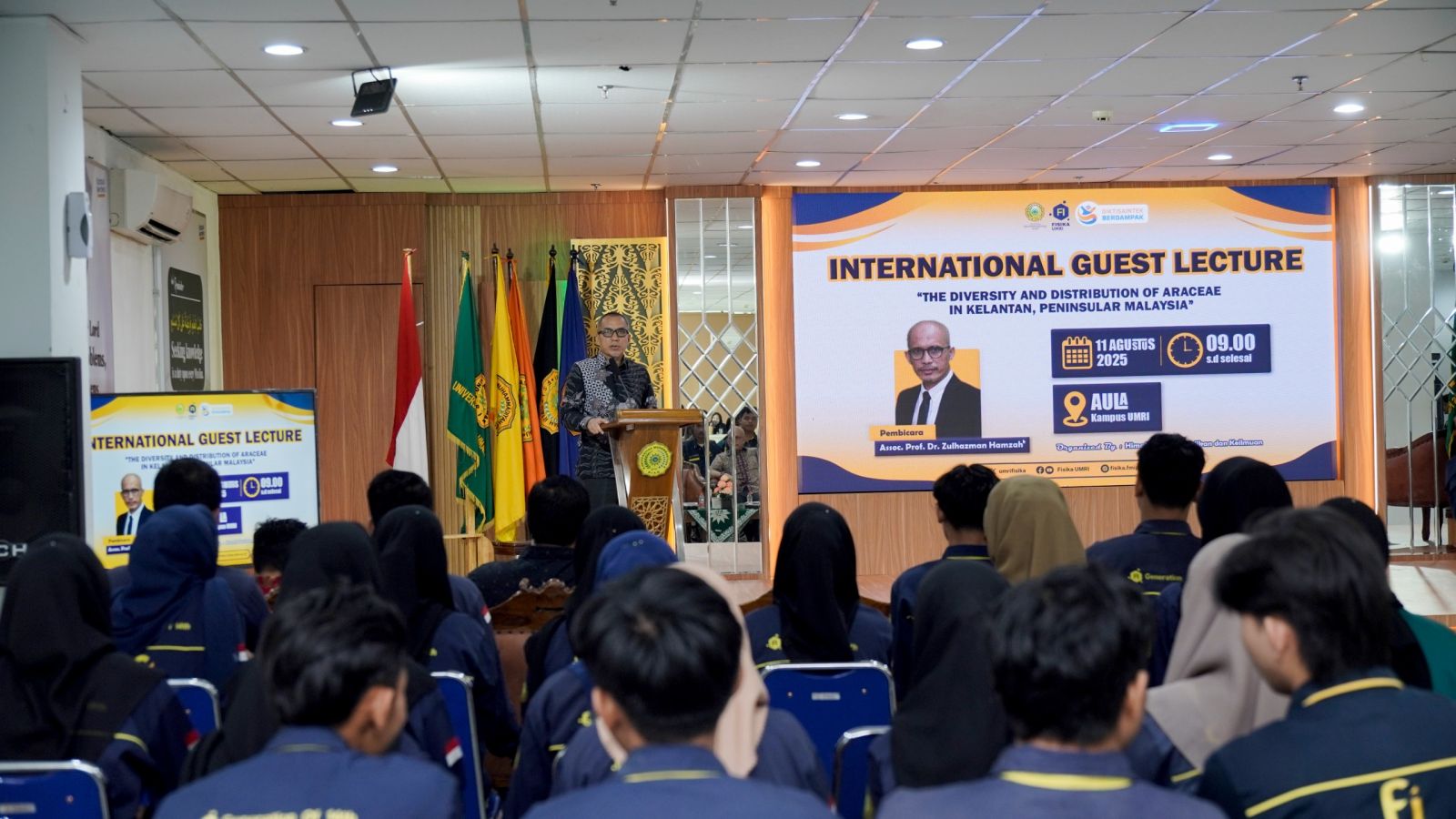 Pekanbaru (umri.ac.id) – Program Studi Fisika, Fakultas Matematika, Ilmu Pengetahuan Alam dan Kesehatan (FMIPA Kes) Universitas Muhammadiyah Riau (Umri) menggelar Kuliah Pakar bertema “The Diversity and Distribution of Araceae in Kelantan, Peninsular Malaysia” dengan menghadirkan narasumber internasional dari Universiti Malaysia Kelantan (UMK). Kegiatan ini berlangsung di Auditorium Lantai 3 Gedung Rektorat Umri pada Senin (11/8/2025) pagi.