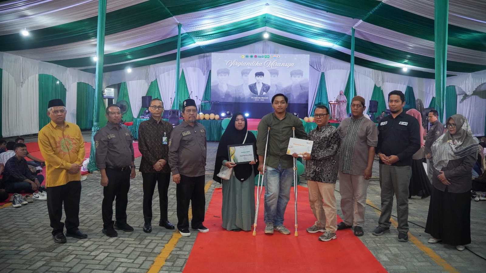 Salah satu momen paling menggetarkan malam itu adalah ketika santunan diserahkan kepada keluarga Alm. Virgiandika Miransya, seorang mahasiswa peserta KKN MAs yang meninggal dunia dalam kecelakaan saat menjalankan tugas pengabdian. Temannya, Imam Omar Atala, yang juga menjadi korban dalam insiden tersebut, menerima bantuan langsung dari BPJS Ketenagakerjaan dan LAZISMU.