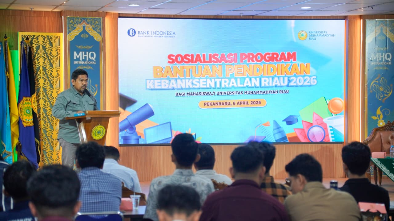 Pekanbaru (umri.ac.id) – Universitas Muhammadiyah Riau (Umri) bekerja sama dengan Kantor Perwakilan Bank Indonesia (BI) Provinsi Riau menggelar sosialisasi Program Bantuan Pendidikan Kebanksentralan Tahun 2026, Senin (6/4/2026). Kegiatan yang berlangsung di Auditorium Kampus Utama Umri, Jalan Tuanku Tambusai-Pekanbaru ini menyasar mahasiswa yang ingin meningkatkan kompetensi sekaligus memperoleh dukungan finansial pendidikan.